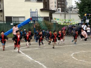 いつものように5歳児どんぐり組の代表の子どもたちの「はじめの言葉」で開幕です!