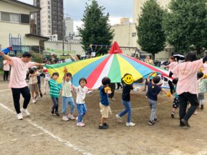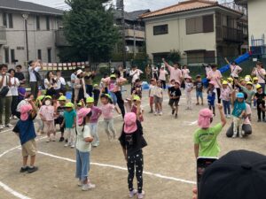 準備体操「わいわいうんどうかい」は、みんなが口ずさむくらいノリの良いリズムで、みんな大好きな体操です。