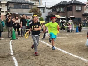 途中 天気予報よりも早い雨の振り出しに遭い、最後は閉会式を省略しての運動会となりましたが、みなさんの雨に対してのご準備、そして急なプログラム変更に対してのご理解のおかげで、思い出に残る運動会となりました。