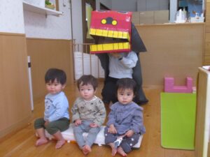はじめは驚いていた子ども達でしたが、お正月クイズで「獅子舞は悪魔や病気のもとを食べてくれる」と知ったことで、勇気を出して頭を噛んでもらう子もいましたよ!